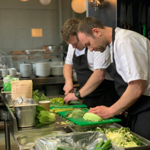 The day started nice and early for our chef team, Jo Pastry Chef and Simon Executive Chef travelled from Birmingham at 5am, they were joined in the kitchen by Dan Head Chef and Adam Sous Chef. Food donations are fundamental to the everyday operation of Refettorio Felix, our team started the day by collecting ingredients and prepping a menu for the day with the food available in the day.