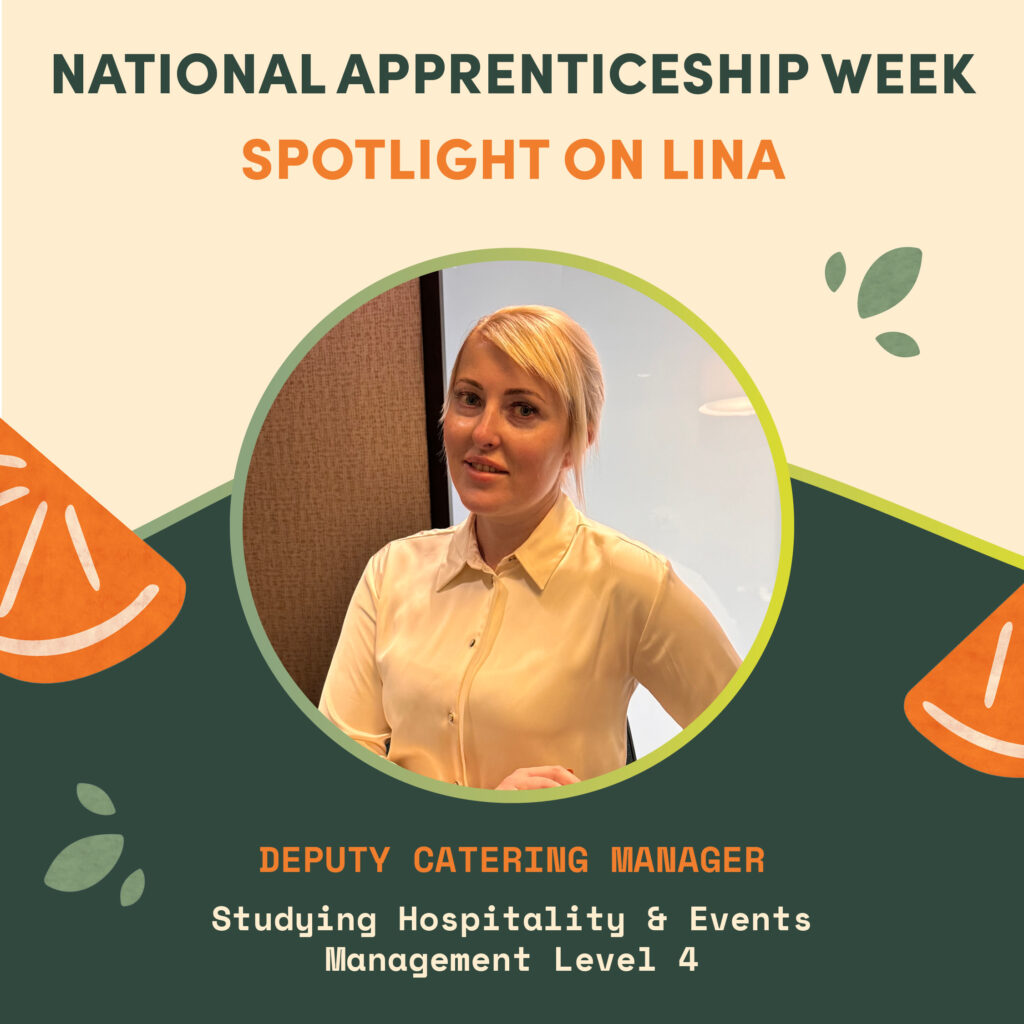 To celebrate National Apprenticeship Week, we are proud to shine a light on Lina, our Deputy Catering Manager, who is currently undertaking a Level 4 Hospitality and Events Management apprenticeship.
