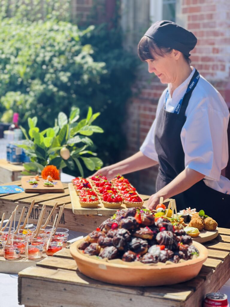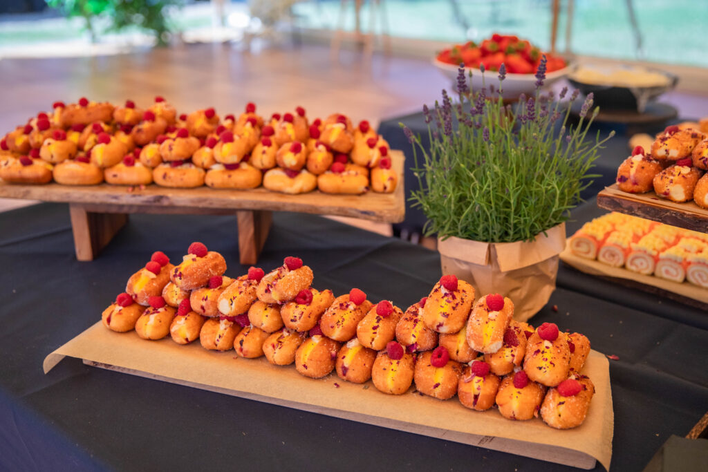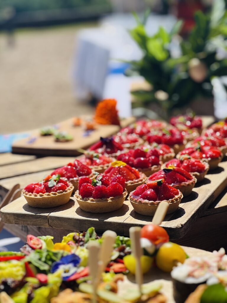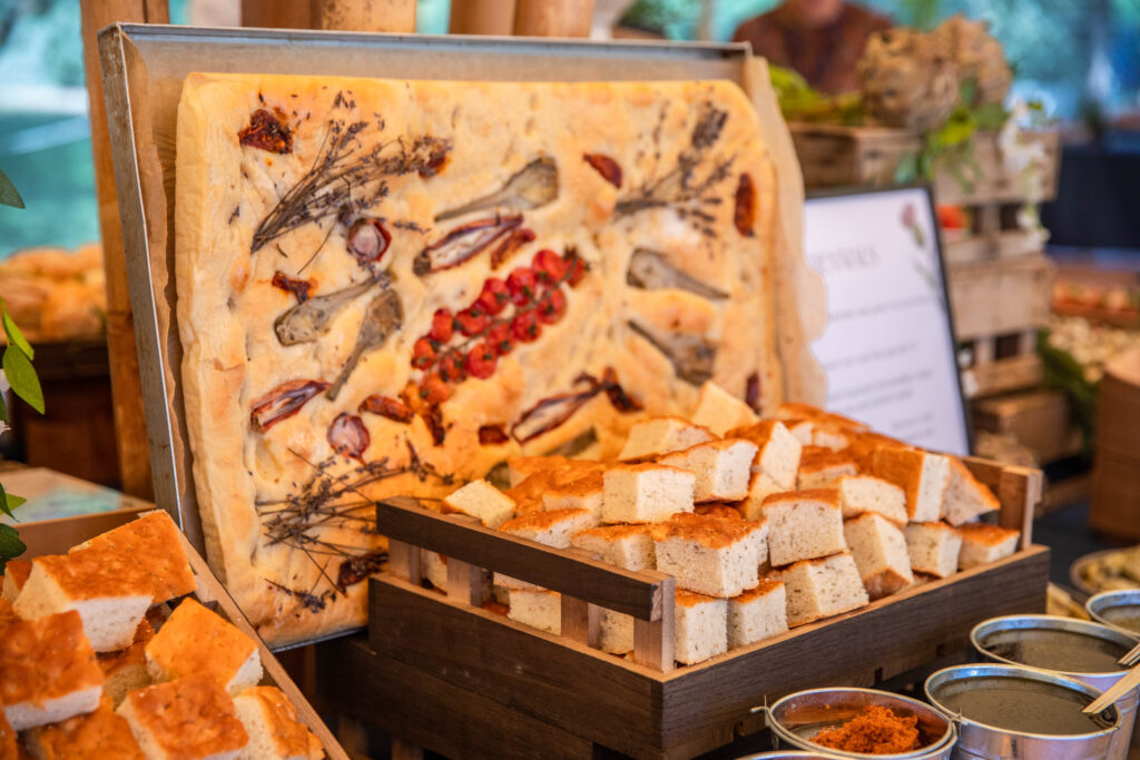 From an elegant five-tier floral cake to focaccia art, our teams presented an array of food creations that made use of the season’s fresh summer produce. Highlights included local asparagus tarts, rose & lychee doughnuts British summer fruit tartlets and Harrow & Hope English sparkling wine.