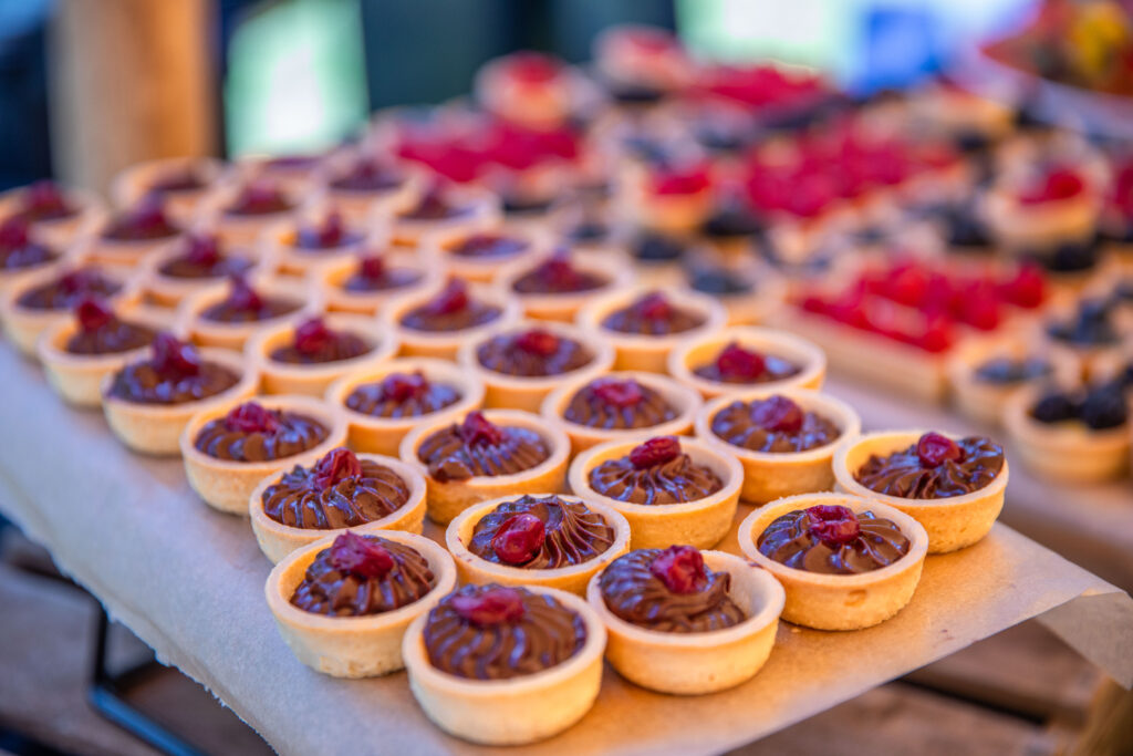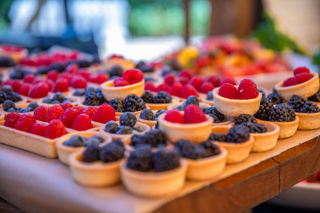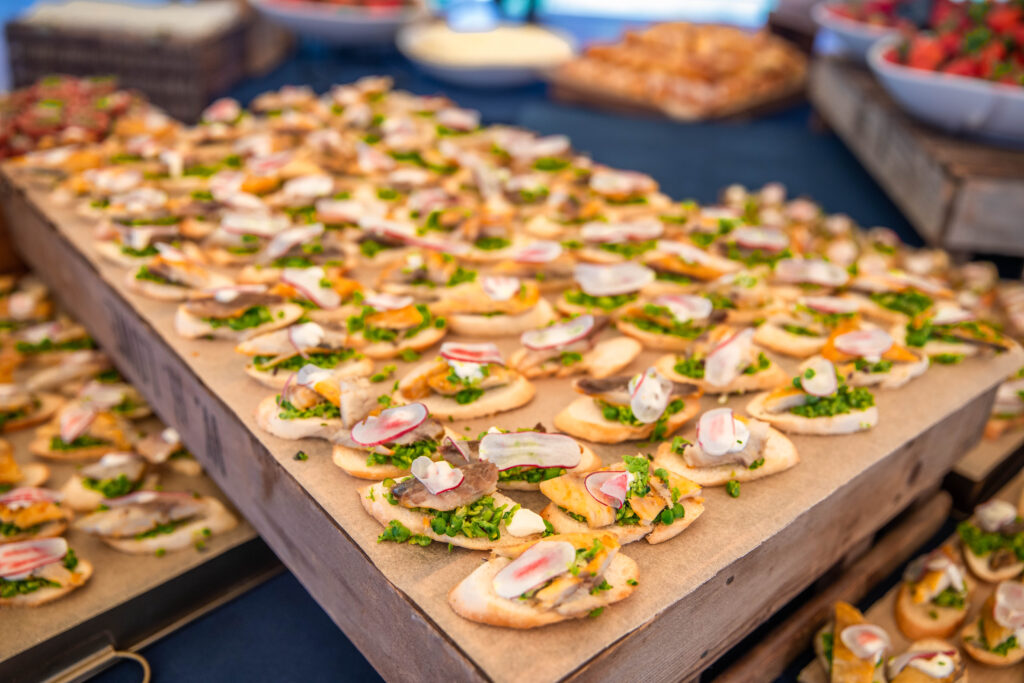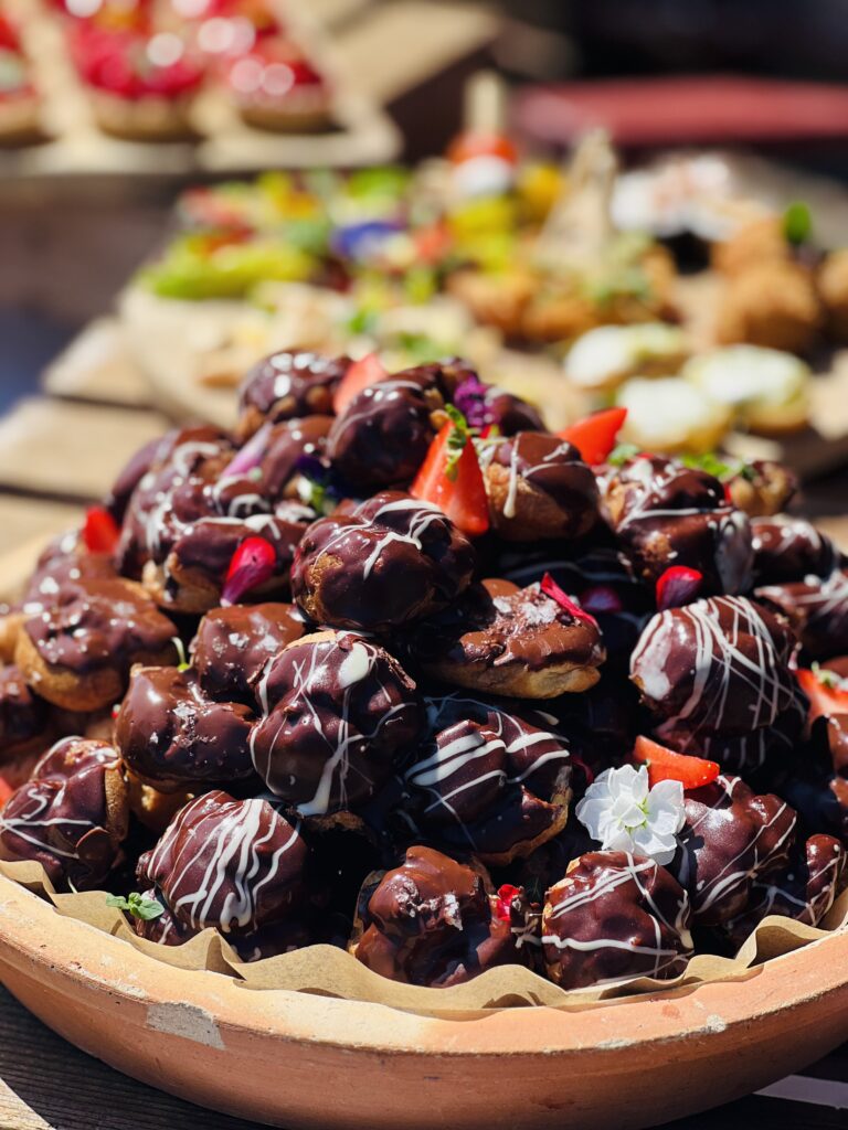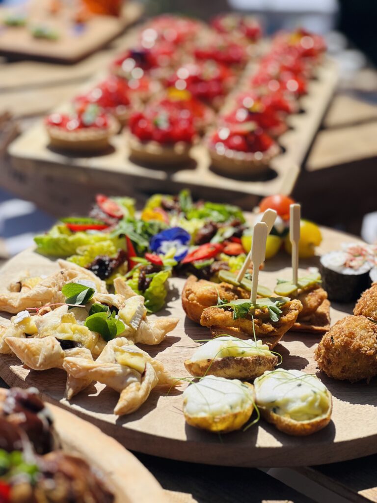 From an elegant five-tier floral cake to focaccia art, our teams presented an array of food creations that made use of the season’s fresh summer produce. Highlights included local asparagus tarts, rose & lychee doughnuts British summer fruit tartlets and Harrow & Hope English sparkling wine.