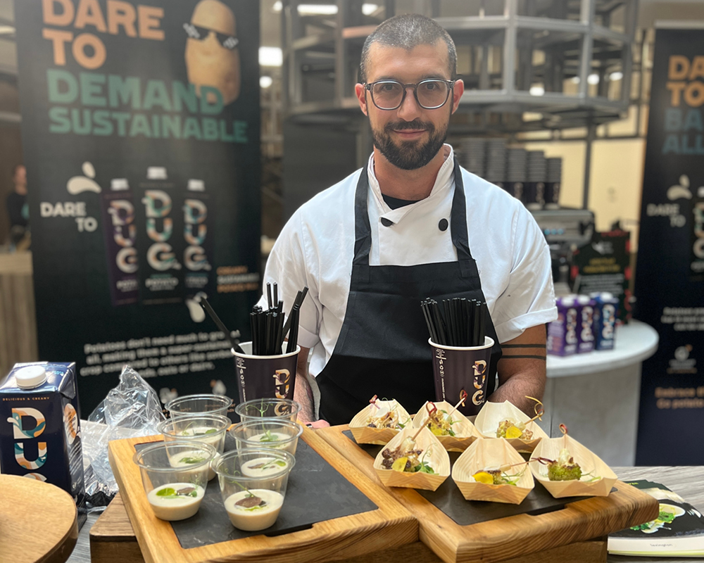 Our chef Mattia made Crème Pat Fritters, Ajo Blanco and Romanesco Cauliflower Steak using DUG potato milk. All three recipes were delicious and we’re looking forward to sharing them again in the future.