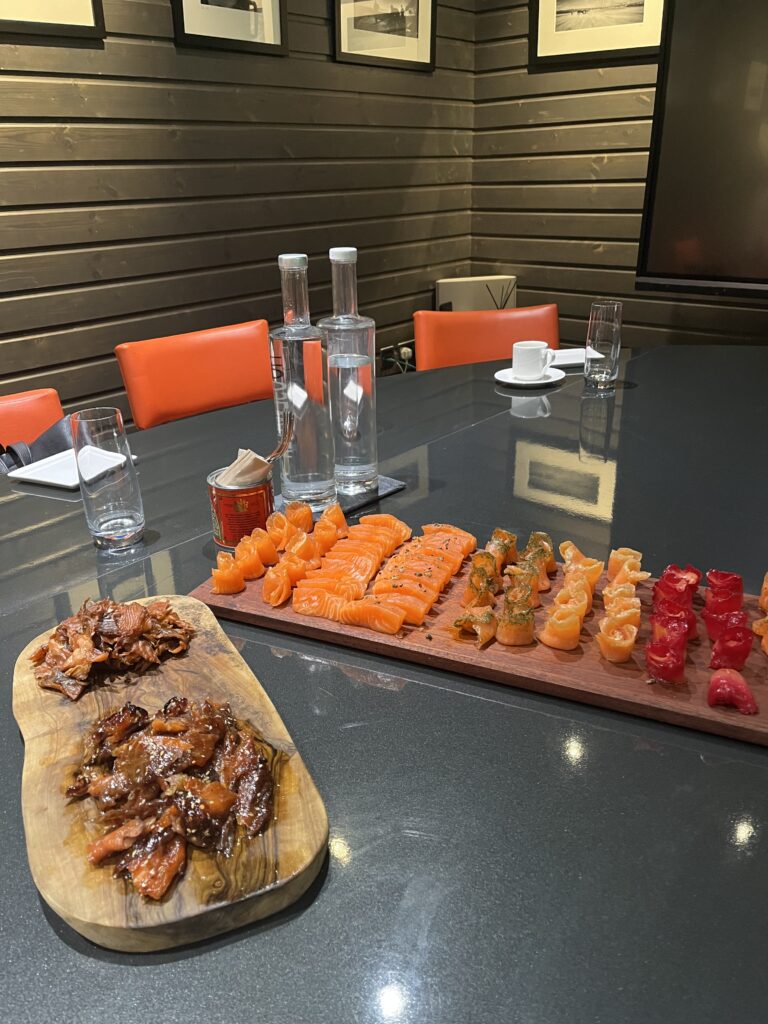 Our chefs saw firsthand where the premium ingredients we proudly serve come from. The craftsmanship behind their world-famous smoked salmon, including the meticulous hand-removal of every bone, really stood out. Everything is made to order and tailored to each client, ensuring a bespoke experience.